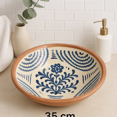 Nuestros lebrillos están hechos y pintados a mano por artesanos locales, lo que significa que no existen dos iguales. Cada uno presenta variaciones sutiles en forma, color y diseño, convirtiéndose en una pieza irrepetible que aporta carácter, calidez y autenticidad a cualquier ambiente.